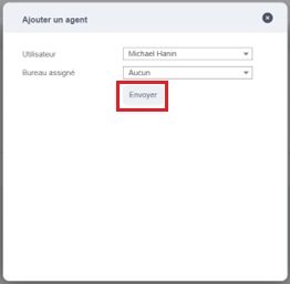 Choose the user you wish to insert as agent, and assign him/her a desktop if necessary. Then click on "Send".