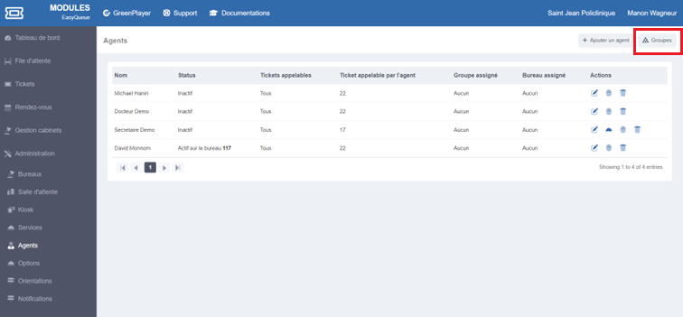You can also manage agent groups by clicking on "Groups".