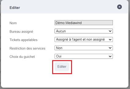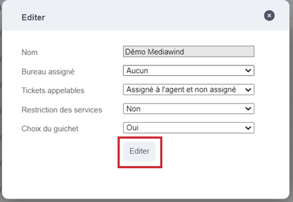By clicking on the "Edit" icon, you can change the information and authorizations linked to the various agent groups.