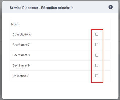 By clicking on the "Service" icon, you can see which services have access to this kiosk.