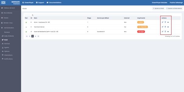 You can modify an existing kiosk by clicking on the "Actions" icons.