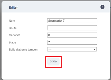 By clicking on the "Edit" icon, you can modify the information linked to a waiting room already created.