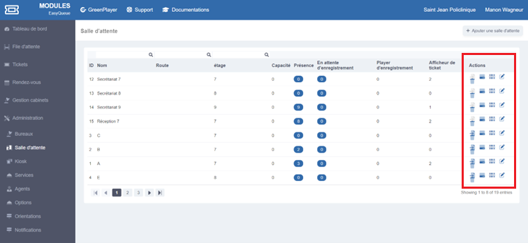 You can then modify, configure and even delete the waiting rooms you've created by clicking on the "Actions" icons.