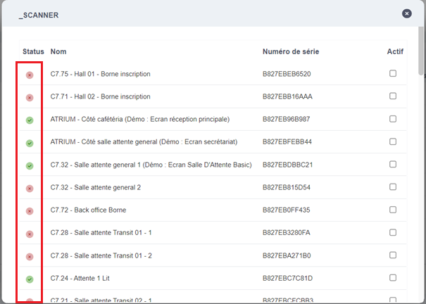 Clicking on the "Scanner" icon brings up a window with information on the status of each scanner.