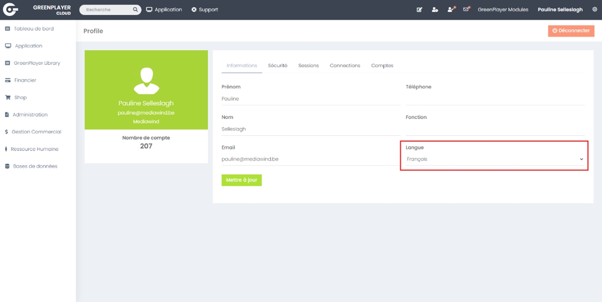 You will be redirected to your user account, where you can choose your language.