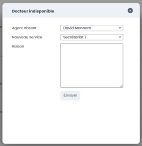 A window will open, indicate which agent is absent and then assign a new service to which to redirect tickets.