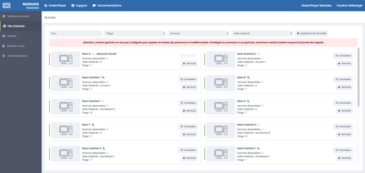 If the agent is not attached to an event in a specific office, there will be a view of the different counters, their availability and certain essential information (such as: the name of the counter, the name of the agent occupying the counter, the department to which he or she is attached, a PMR notion...).